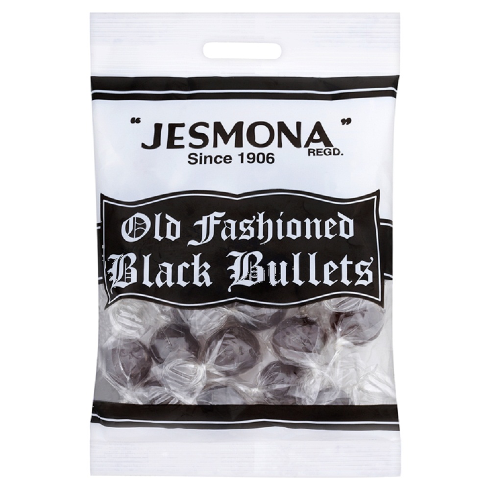 Jesmona Black Bullets are very traditional mint flavoured sweets, whose origins are lost in the mists of time. Black Bullets themselves are a fairly typical sweet from the North East of England where the word Bullet is a dialectic term for any boiled sweet.